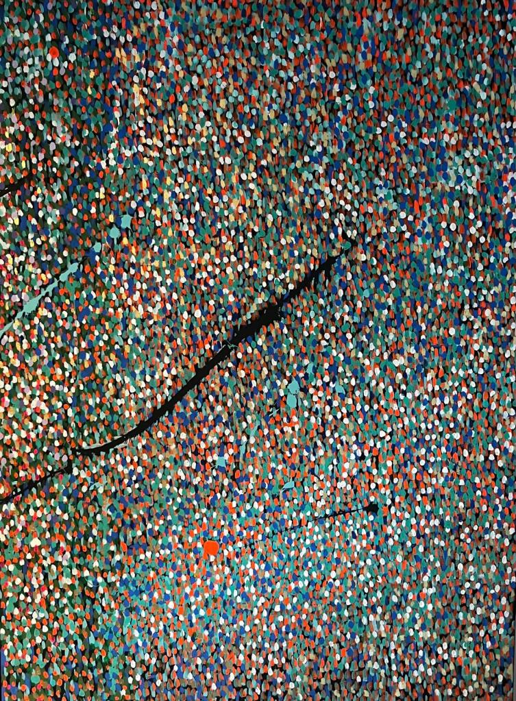 Sylvie D’Halluin trouve dans l’abstraction lyrique un moyen d’expression instinctif et libéré de toute contrainte figurative. Chaque toile devient une exploration sensorielle où la couleur, la matière et la lumière s’entrelacent pour donner naissance à des compositions vibrantes. Son travail repose sur l’émotion pure, traduisant des instants fugaces, des énergies intangibles et des reflets intérieurs. L’application de feuilles d’or apporte une dimension lumineuse et vivante, captant le regard et renforçant la profondeur de ses œuvres. Pour elle, l’abstraction lyrique est un dialogue silencieux entre l’artiste et le spectateur, une invitation à ressentir plutôt qu’à interpréter.